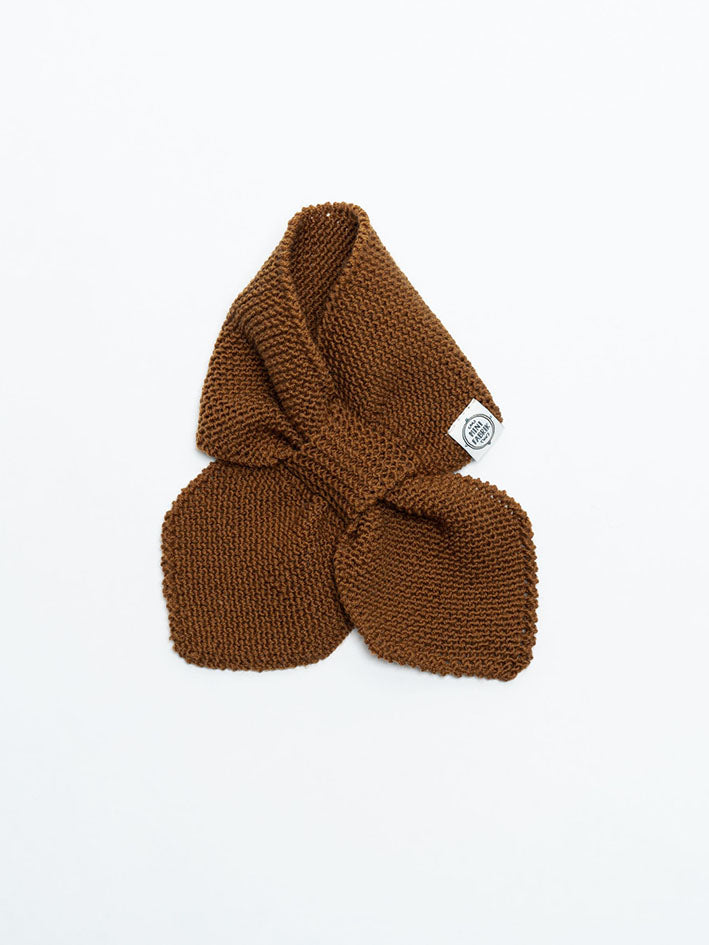 Soft Merino Scarf Frida and Frederik in Dark Ocher by Mini Fabrik that thanks to its design protects the small neck very well from the cold. Hand knitted. 100% merino wool.