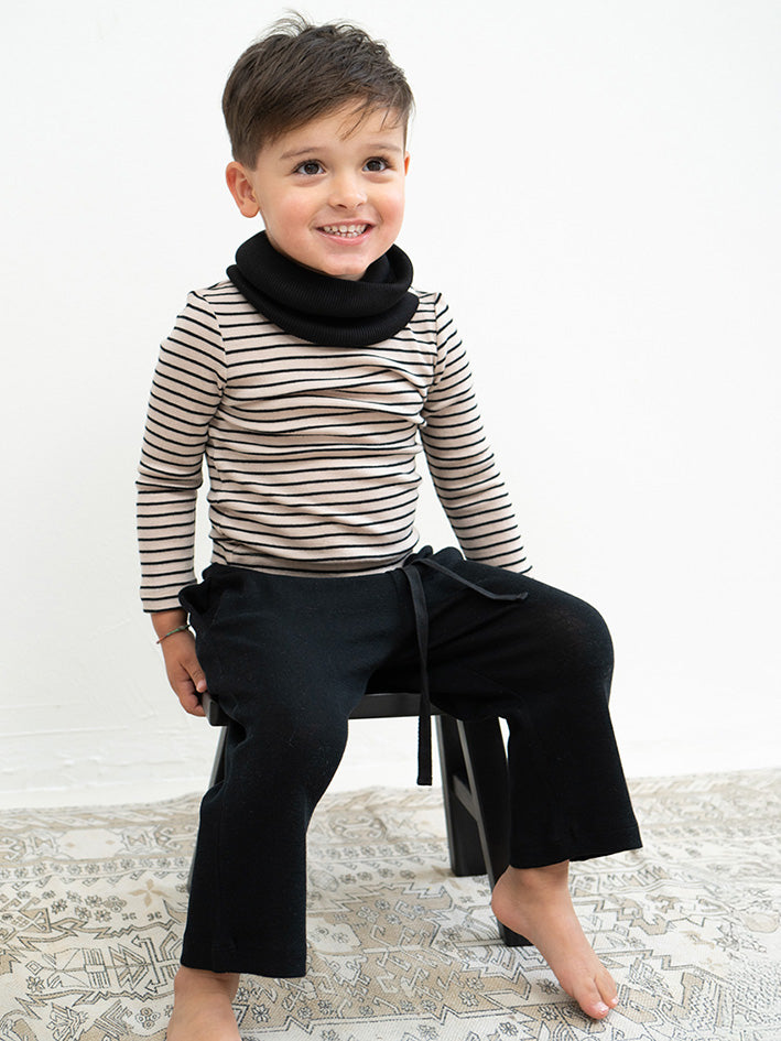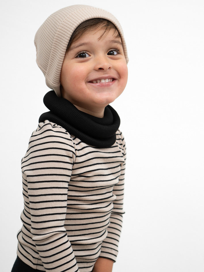 This luxurious Birk Scarf in Black by Minimalisma is designed for girls and boys, made from our signature silk-seamless quality. This snood offers a silky soft touch, ensuring optimal comfort while keeping your little ones warm and cozy. Silk is known for its hypoallergenic properties and gentle touch against the skin. This, combined with the seamless construction of the garment, makes this snood an excellent choice for kids with sensitive skin. Quality: 70% Silk, 30% Cotton