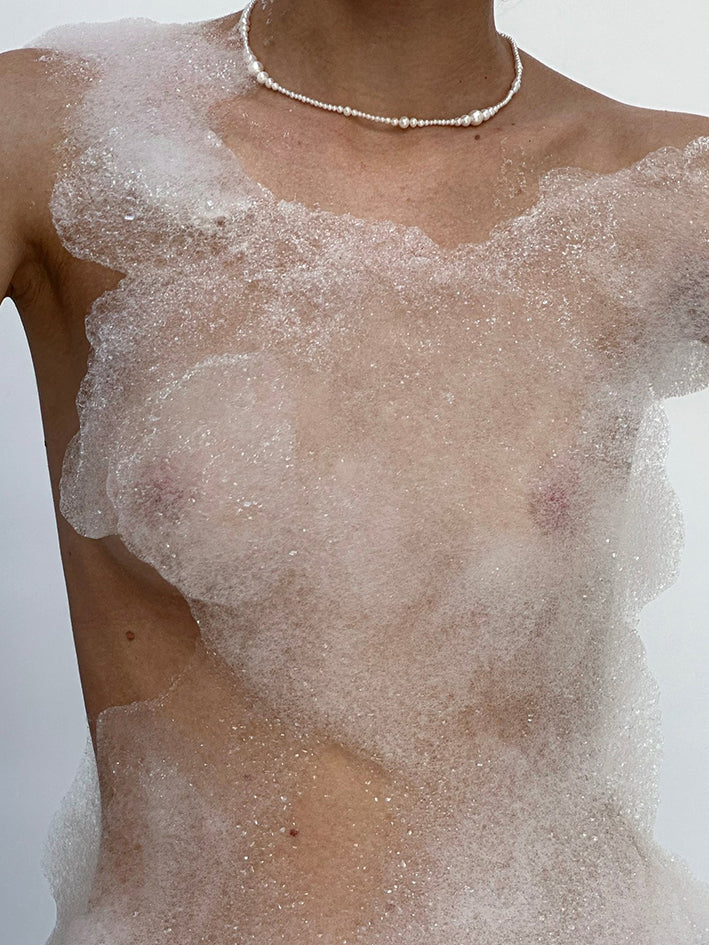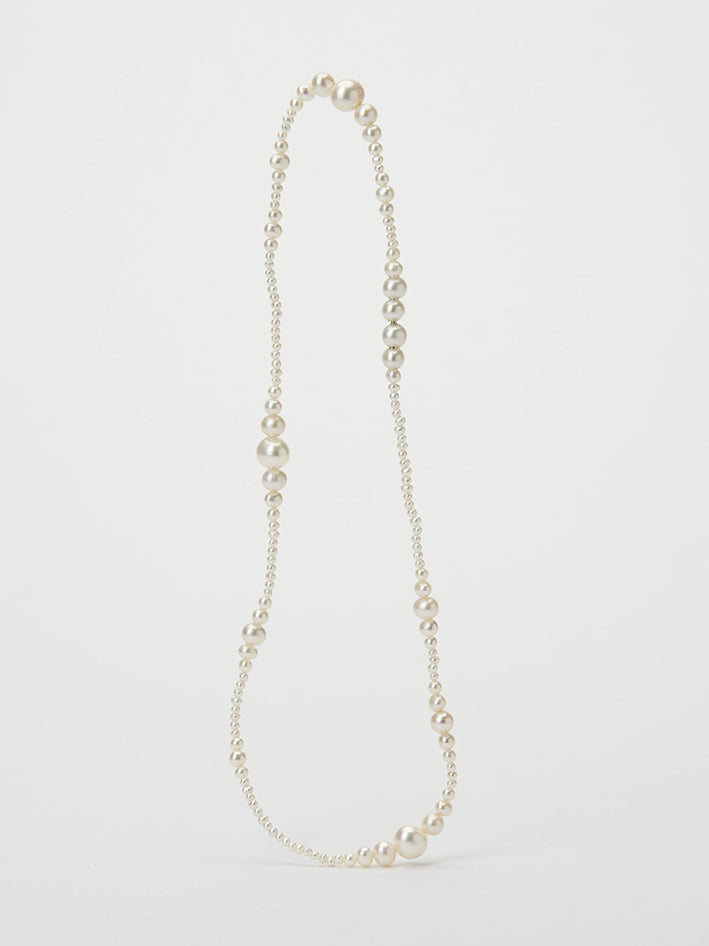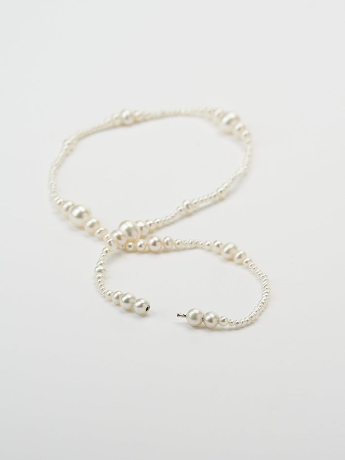 Made of different sized fresh water pearls and a silver bajonette closing, the glyzinia pearl necklace sits gently around the wearer's neck.