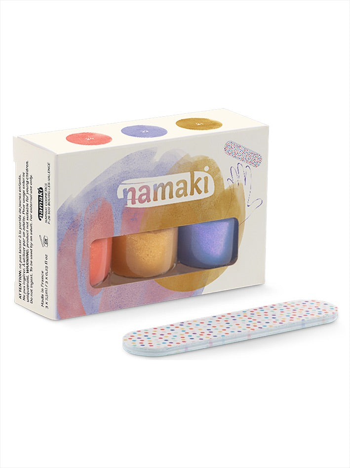 Explore the vibrant range of colours of Namaki Water-based Nail Varnish Kit. This easy to use nail polish dries quickly, and can be peeled off like a sticker when it's time to remove - no need for nail polish remover! A quick and easy way for kids to add colour to their nails, Namaki Nail Polish is free from parabens, formaldehyde, phthalates, toluene, camphor and nanoparticles, making them completely safe for kids. Perfect for dressing up days, fancy dress parties and everyday creative play.