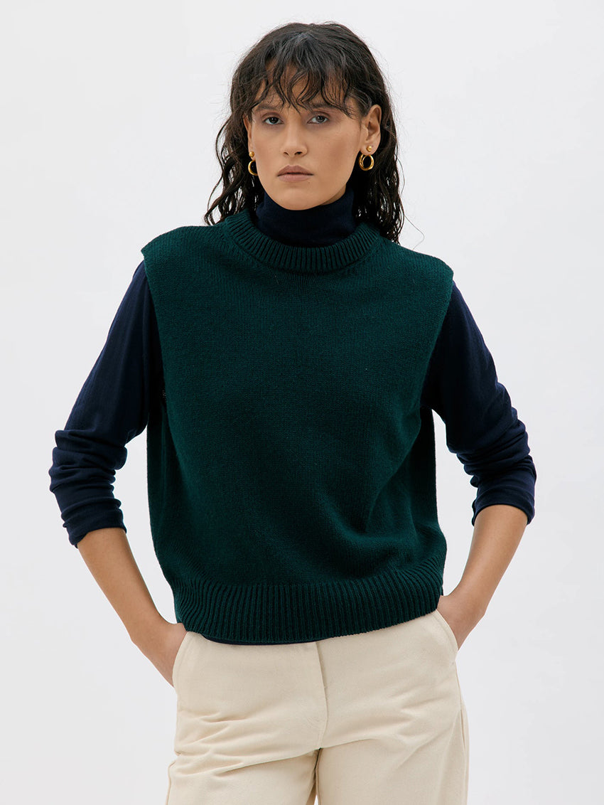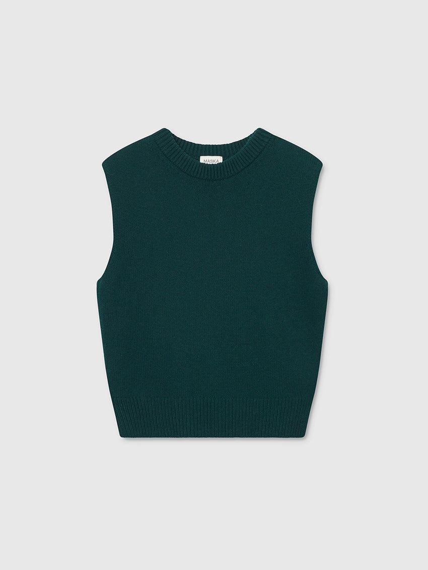 The Maska Nera Vest features clean, neat armhole finishes, a relaxed cropped volume with a ribbed crew neck.
