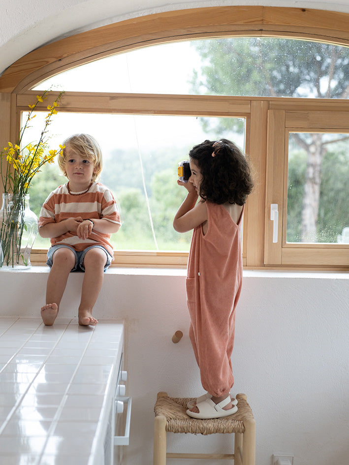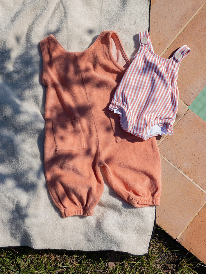 The 1 + In The Family Nicola Overall in Coral is made from 81% Cotton 19% Polyester. Made in Spain