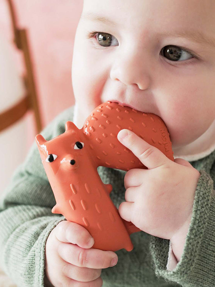 Oli&Carol Cyril Squirrel Fox Baby Teether is one of Donna Wilson’s first creatures & the most distinctive one, meant as a baby teether and bath toy.