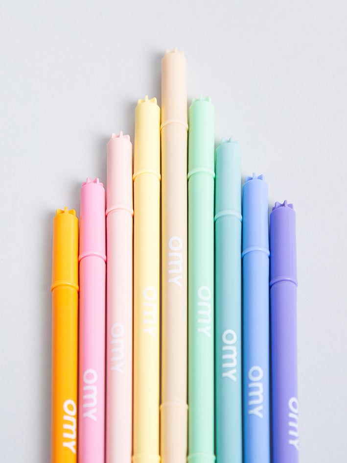 PASTEL MARKERS OMY - Assortment of 9 pastel markers Trendy markers with soft and prominent colors ! 9 unreleased colors that spark new nuances through coloring and drawing. Conveniently, the box transforms into an at home crayon holder! Made in Italy Made in France by OMY and made in Italy