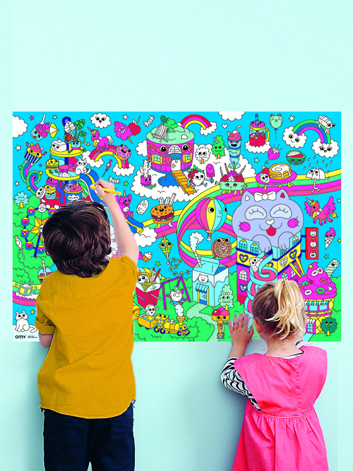 KAWAII - STICKER POSTER OMY - Giant poster + 100 stickers Irresistible illustrations inspired from the Japanese Kawaii universe, a little world filled with adorable details and characters. Have fun with the giant Search & Find poster activity with more than 100 stickers to entertain kids for hours. NEON COLORS Format Unfolded : 39,4 x 27,6 in Composition 100 % paper Made and designed in France by OMY