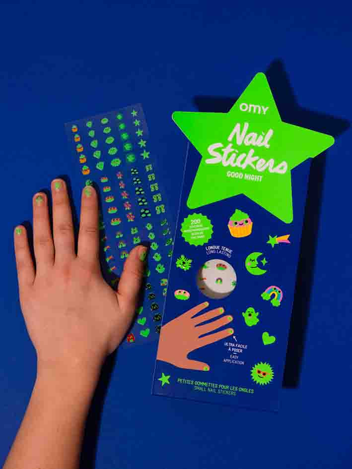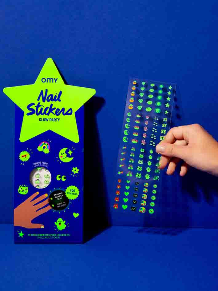 Like magic, these little OMY Nail Stickers Glow Party light up in the dark!