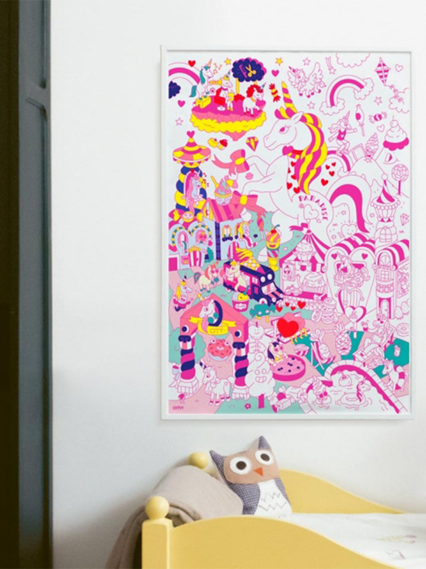 Loved by kids on the Super Buddies bracelets, Lily the unicorn now has her own dedicated giant poster. In a magical scenery, rainbows and other fantasies come to life... For the first time, OMY’s lines will be neon pink.