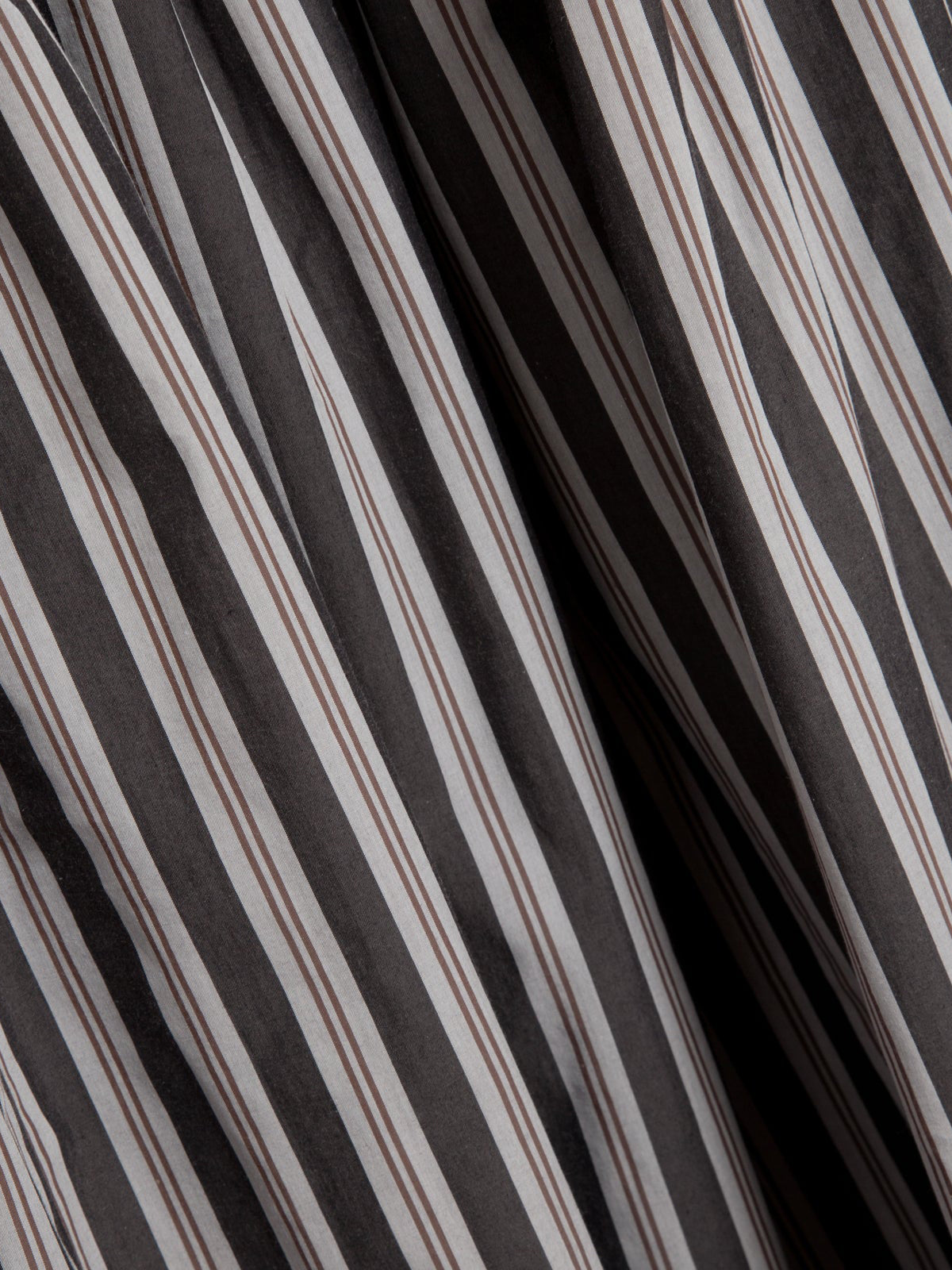 A short-sleeve midi shirt dress cut from Portuguese striped cotton. Designed with a regular collar, chest patch pocket, and side-seam slit pockets. Finished with Mother of Pearl buttons, a dropped-waist detail, and an easy oversized fit.