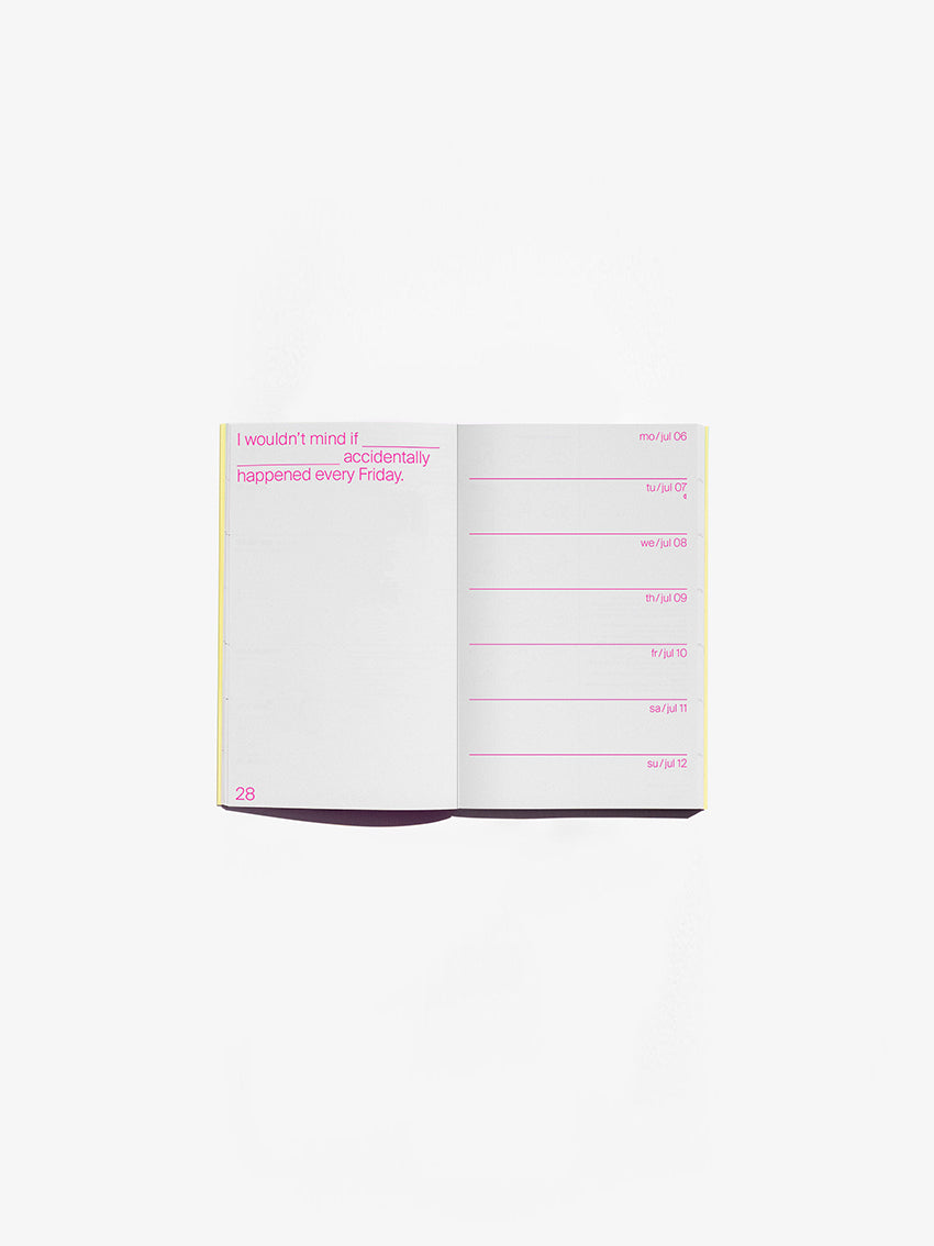 This year’s Day One to One Day planner has been streamlined for even greater clarity and ease of use, with plenty of space to organize tasks and notes. It keeps things practical while adding a touch of surprise: Each week features a playful sentence with blanks to fill in, encouraging self-reflection. It can also spark conversations or simply bring a laugh—like when discovering the weirdest thing one is really good at.