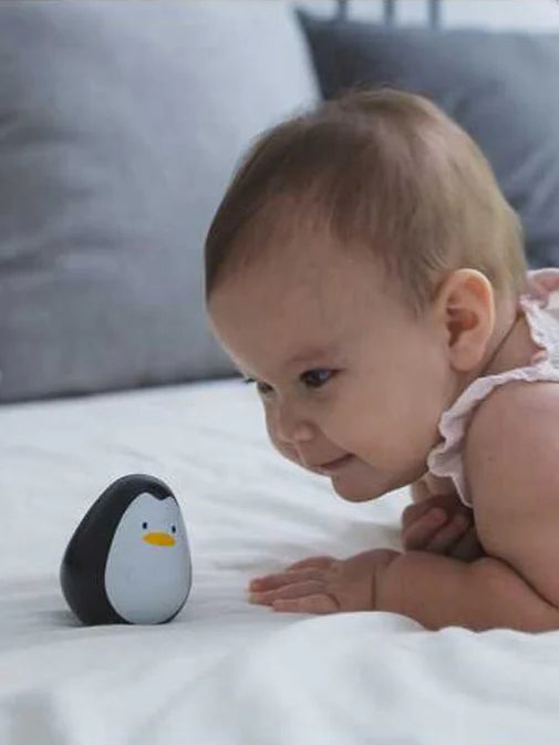 Watch as baby pushes the PlanToys Penguin Wobbler in delight as it gently tumbles, wobbles, and rolls. This Penguin is weighted to help it upright itself for repeated fun. This item encourages visual development for babies and is a great toy to accompany tummy time and keeps them engaged while lying on their tummy. Incorporate the penguin wobbler into free-play environments and storytelling time Learn about the animals of the arctic by exploring the penguin and its cohabitants Penguin tumbles and rocks from side to side when pushed Sustainably made in Thailand using chemical-free rubberwood, formaldehyde-free glue, organic pigments and water-based dyes.