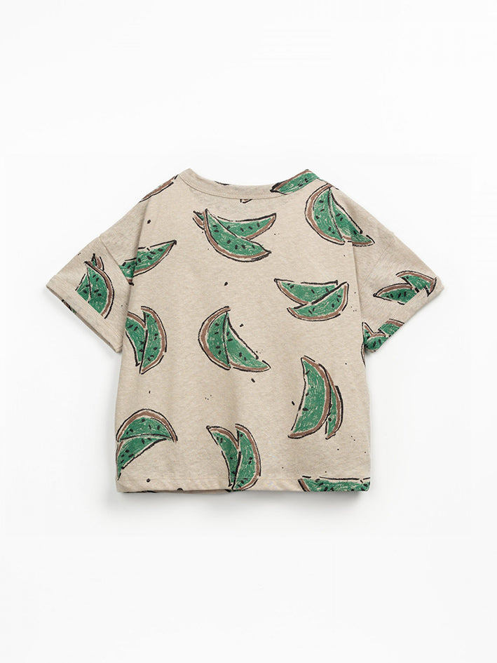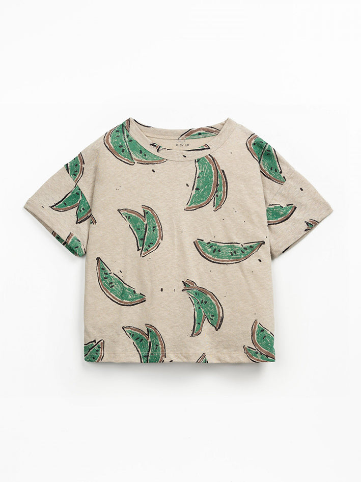 This Play Up T-Shirt is made of jersey fabric with a blend of organic cotton and linen, in Pottery Beige color. It features short sleeves, a round neckline, a fruit slice print and folded sleeves. 50.0% Organic Cotton,50.0% Linen