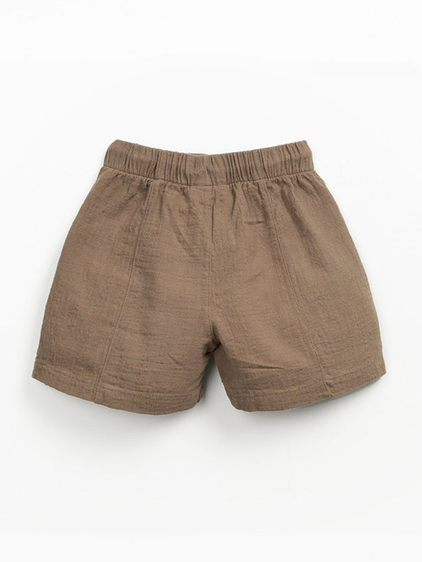 These Play Up Woven Shorts are made of organic cotton fabric in Rocks Brown color. They feature an elastic waistband with an adjustable drawstring, two side pockets. 100.0% Organic Cotton