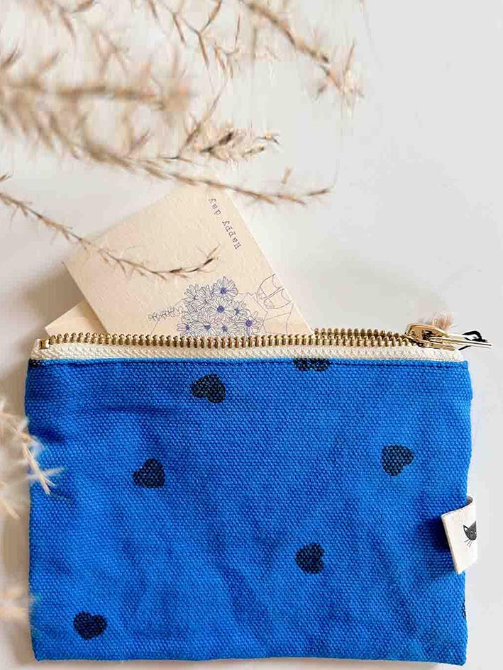 The Marie Heart zipped Coin Purse in Greek Blue from Rose in April will be perfect for storing all your little treasures: coins, bank cards, ID cards, keys, jewelry,... or those of your little ones! To slip into your shopping bag or your fanny pack! Made in Portugal, our Marie purse is made from cotton canvas, a durable and resistant material Checkerboard Print Dimensions: H10 x L15cm Composition: 100% Cotton Made in Portugal Cotton OEKO TEX certified