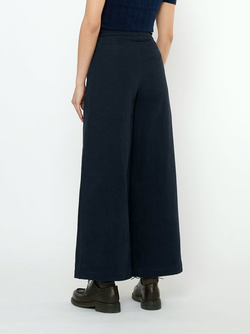 Flattering high-rise with a side-zipper and single button closure for a clean, minimalistic look at the hips.