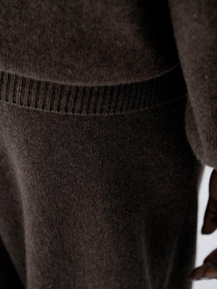 Recycled cashmere Soar Sweater in Teak Brown from Baserange Crewneck Raglan sleeve Ribbed collar, cuffs, and hem 95% Recycled Cashmere 5% Wool Made in France