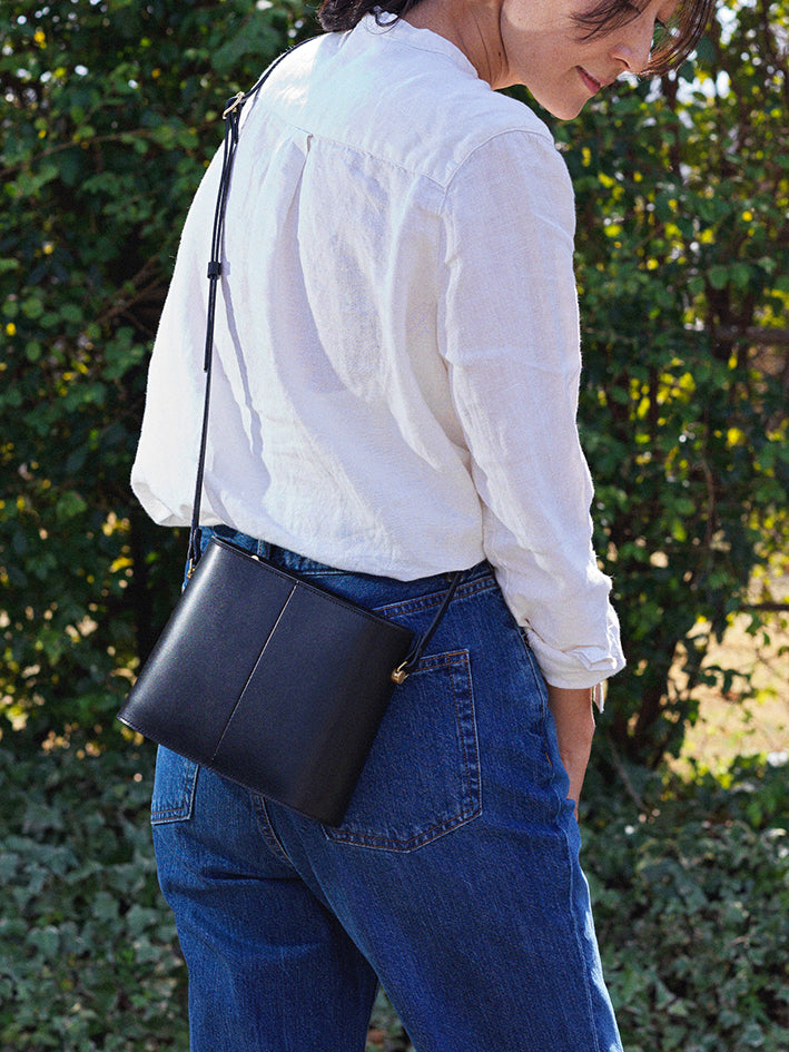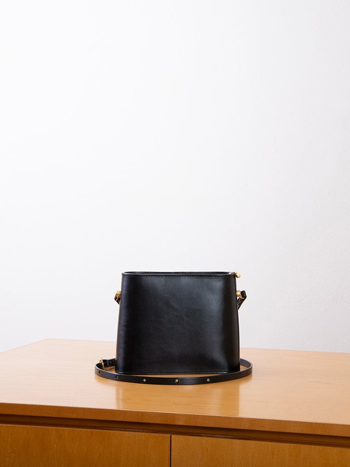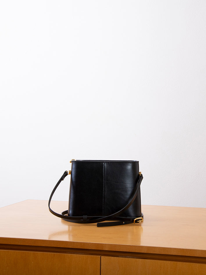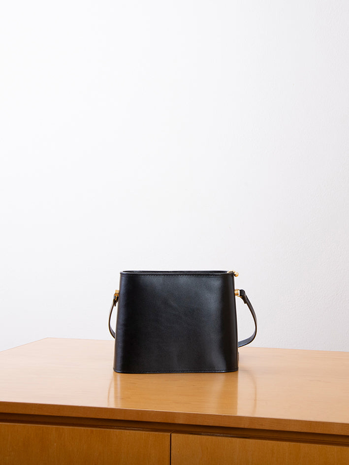 Southern Field Industries Shoulder Bag in Black is made of Japanese vegetable tanned cow leather with EXCELLA® zipper.