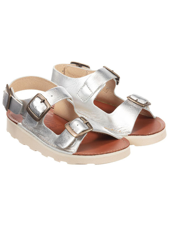 Spike a triple-buckle Silver Leather Sandal is a contemporary and on-trend addition to any sandal collection featuring the Young Soles signature lightweight EVA sole.