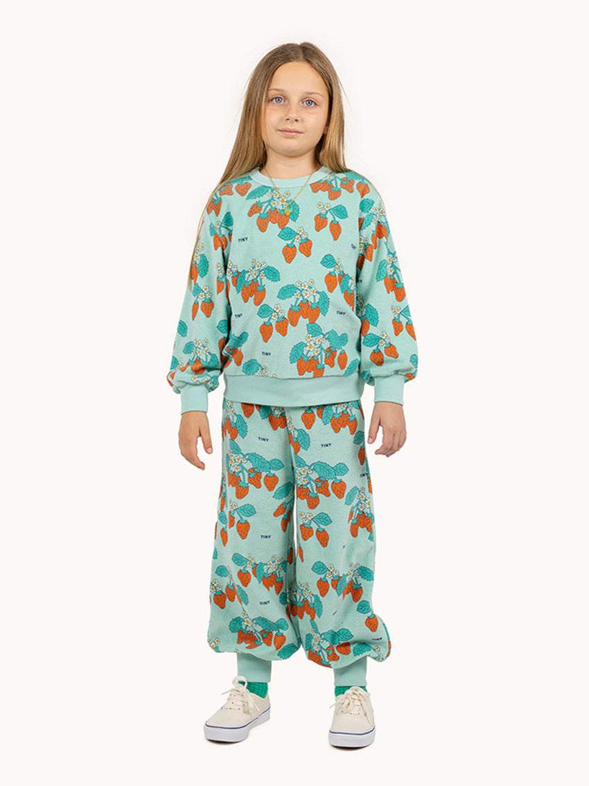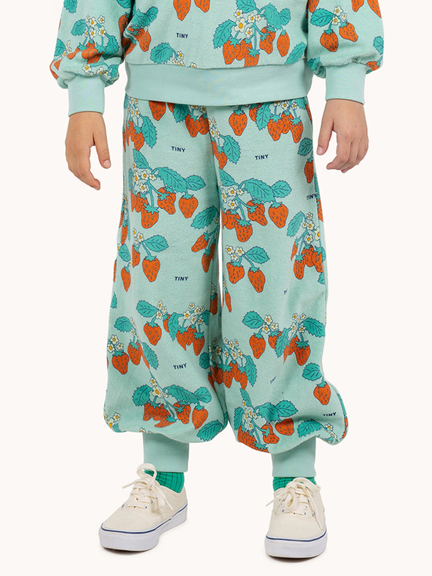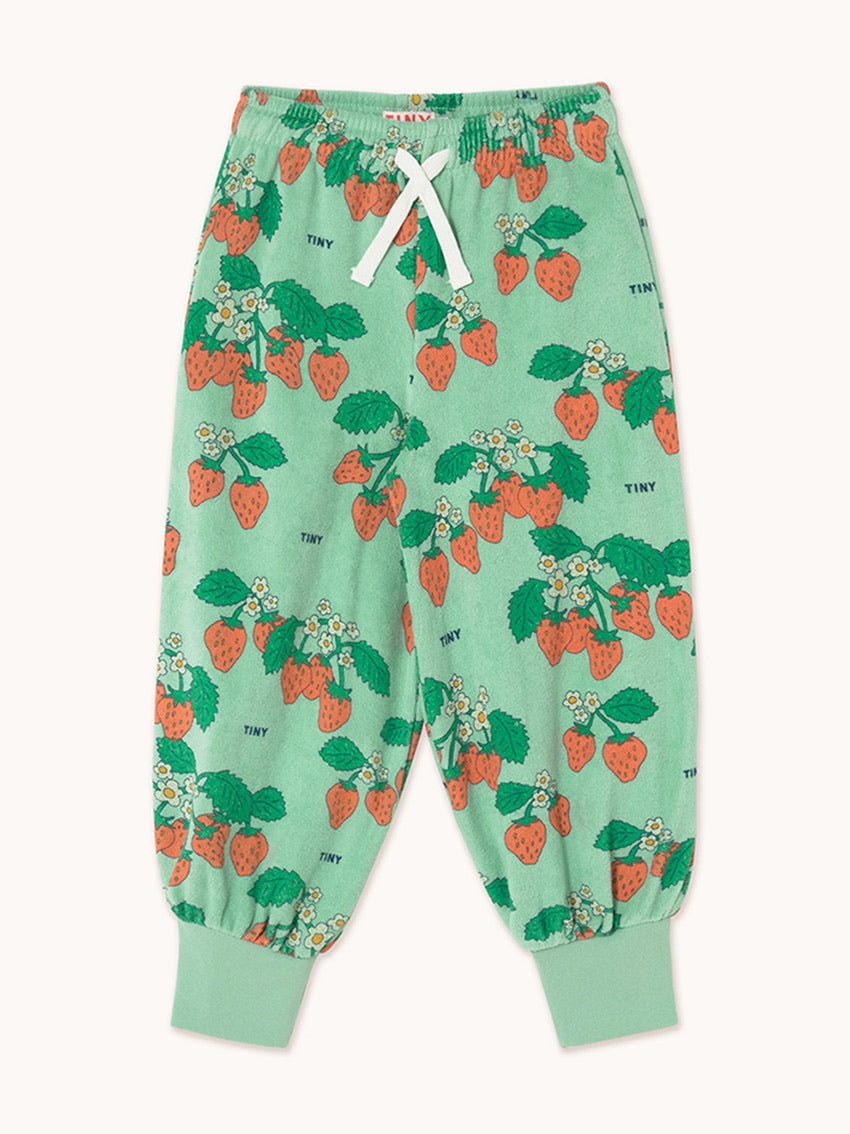Turning Strawberries into a statement! This Strawberries themed towel Sweatpant in Washed Emerald by Tinycottons with our original print is crafted from 100% organic cotton. It features a comfortable, relaxed silhouette with elasticated waistband, drawcords and rib trims. Carefully designed in Barcelona, crafted in China in BSCI certified factories, following responsible and sustainable practices every step of the way. Composition: 100% organic cotton