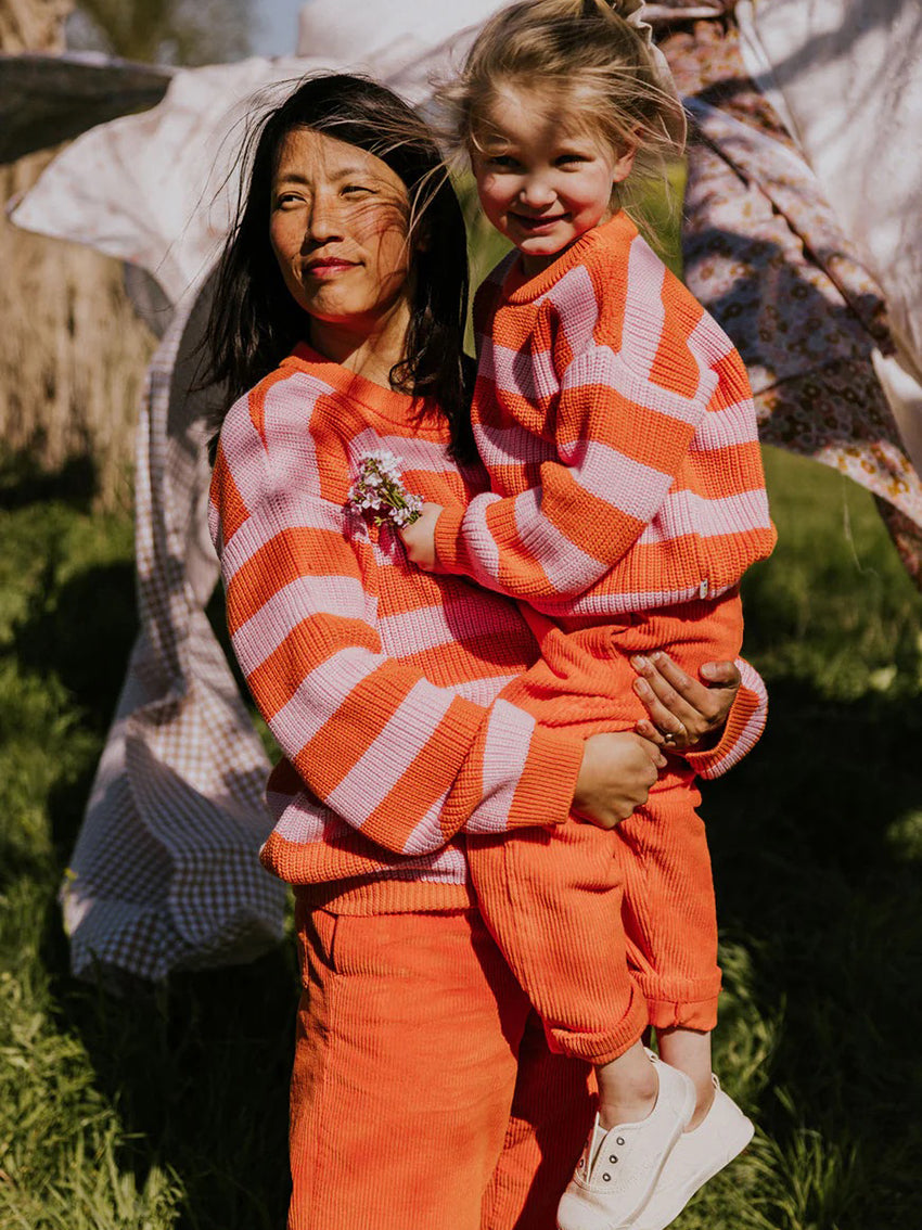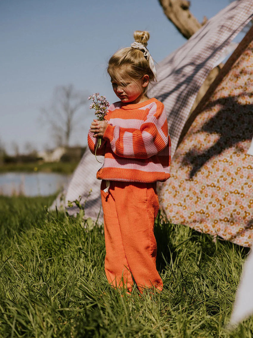 Der gestreifte Pullover von Yuki Kidswear bringt zeitlosen Stil in die Garderobe. Der unisex Strickpullover wird aus 100 % Bio-Baumwolle gefertigt und besteht aus GOTS- und OEKO-TEX®-zertifizierten Garnen, die besonders hautfreundlich und angenehm weich sind.