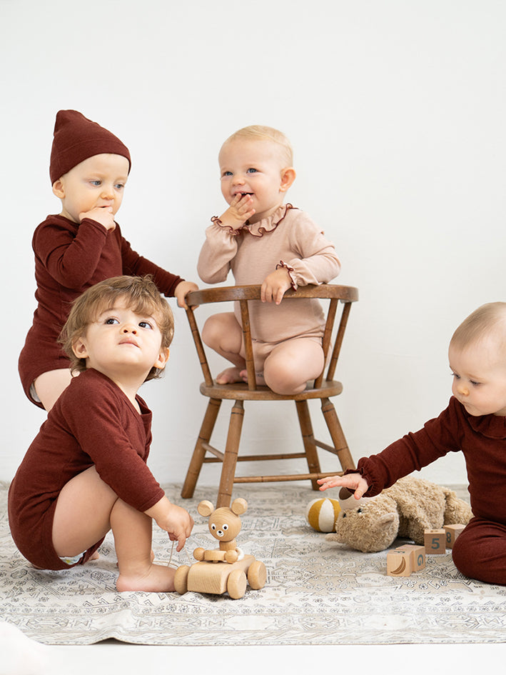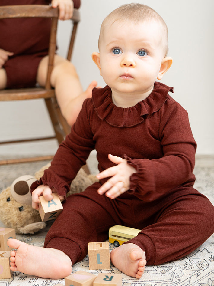 The soft wool-silk jersey Turbo Pants in Hibiscus by Minimalisma offer a soft and cozy feel against your little one's delicate skin. The elastic waist provides a comfortable and adjustable fit, allowing for easy movement and play. Embrace the perfect balance of warmth and breathability with these versatile pants, ideal for everyday or sleep wear. Quality: 70% Wool, 30% Silk