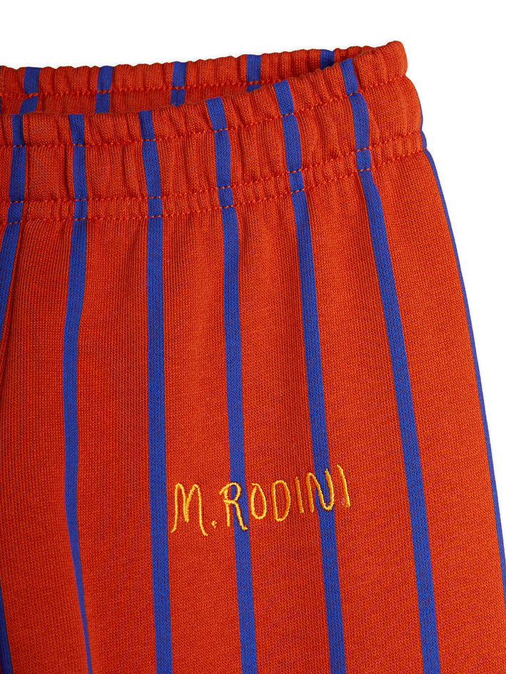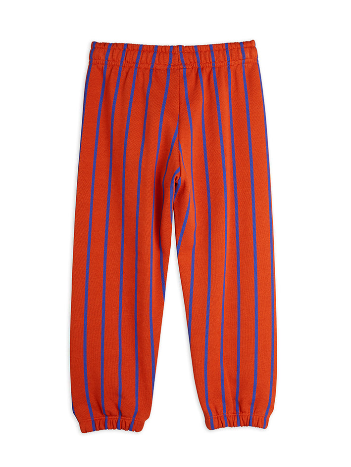 Mini Rodini Vertical Stripes Sweatpants made in 100 % GOTS-certified organic cotton. Designed in a Red stripe pattern.