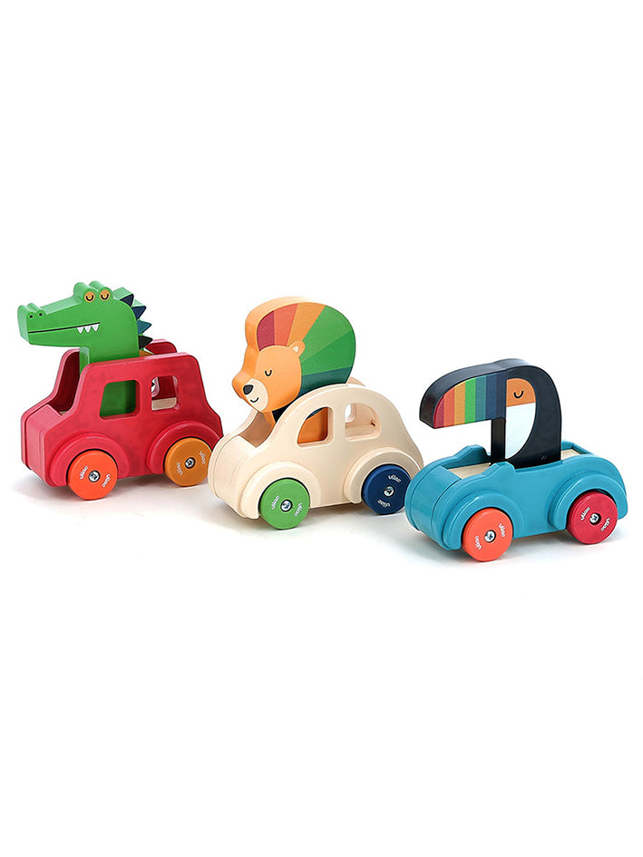 This charming wooden toy features a colorful tucan at the wheel. Press its head for a fun “squeak squeak” surprise!