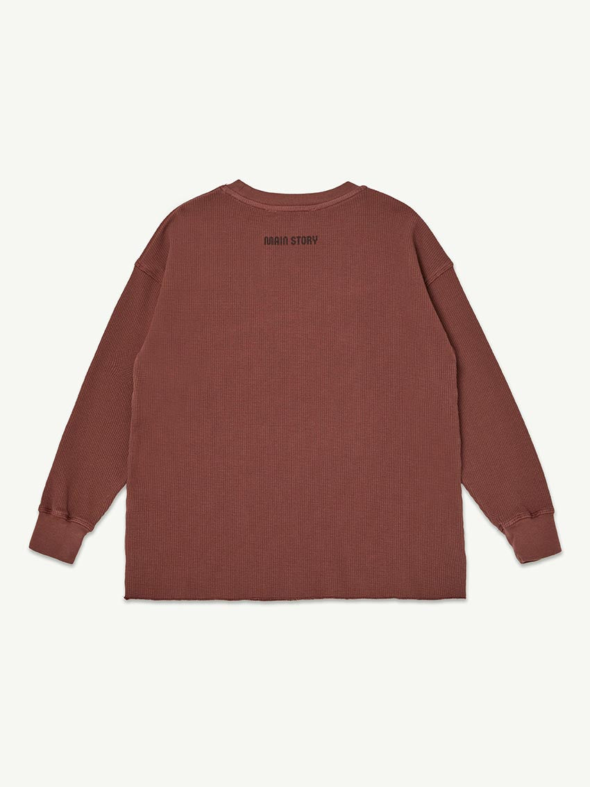 The Waffle Tee in Hot Chocolate is crafted from an organic cotton blend with a unique waffle texture for an extra soft feel. This long-sleeve tee features a ribbed neck and cuffs with a cut hem, designed with a loose, oversized fit and dropped shoulder for effortless comfort.