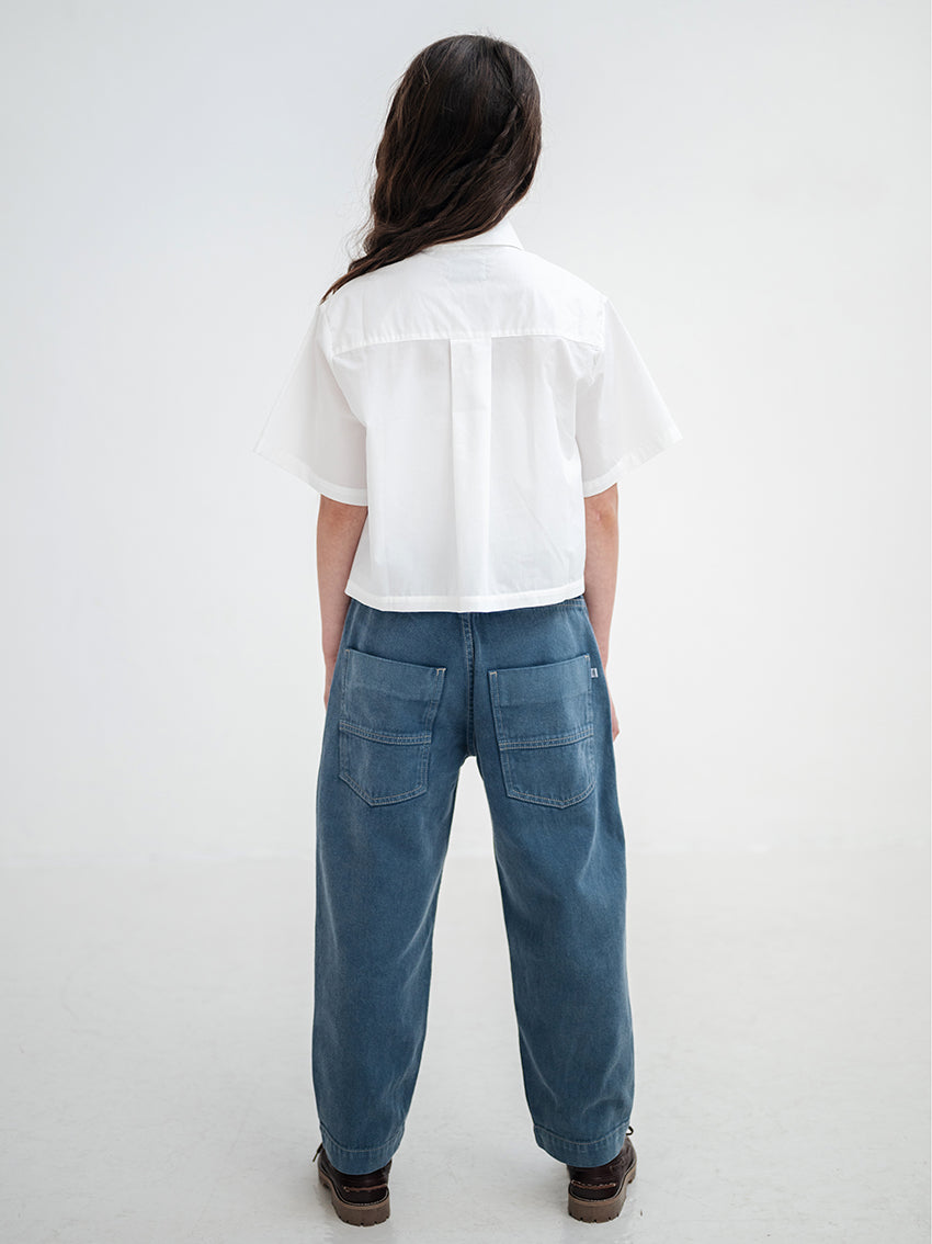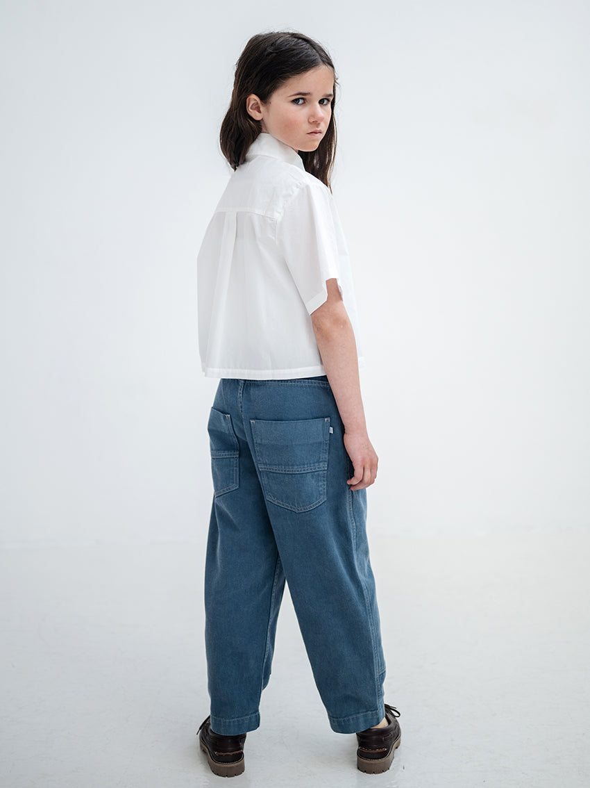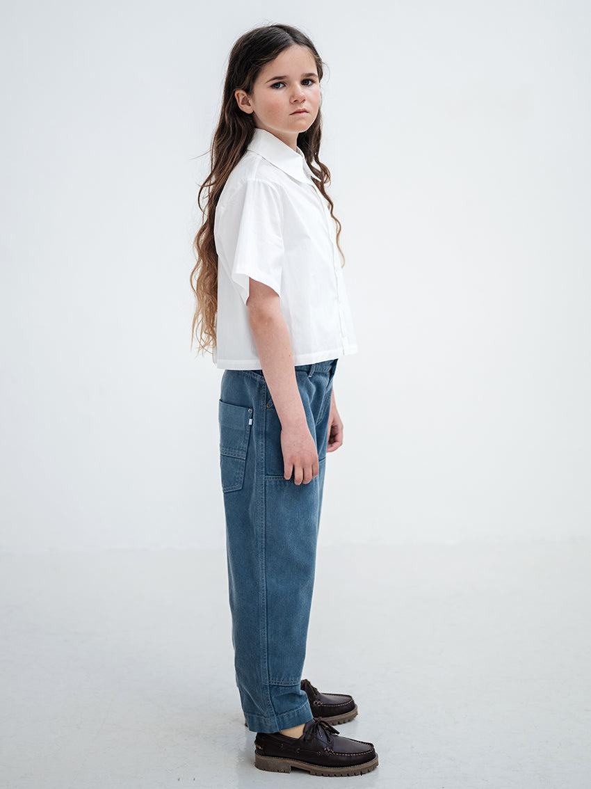 In einem satten Deep-Sea-Blau präsentieren sich diese Worker Pants mit modernem Utility-Charakter und einer markanten Silhouette. Gefertigt aus 100 % Bio-Baumwolle, verbinden sie klassische Workwear-Elemente mit einem zeitgemäßen Barrel-Leg-Schnitt.