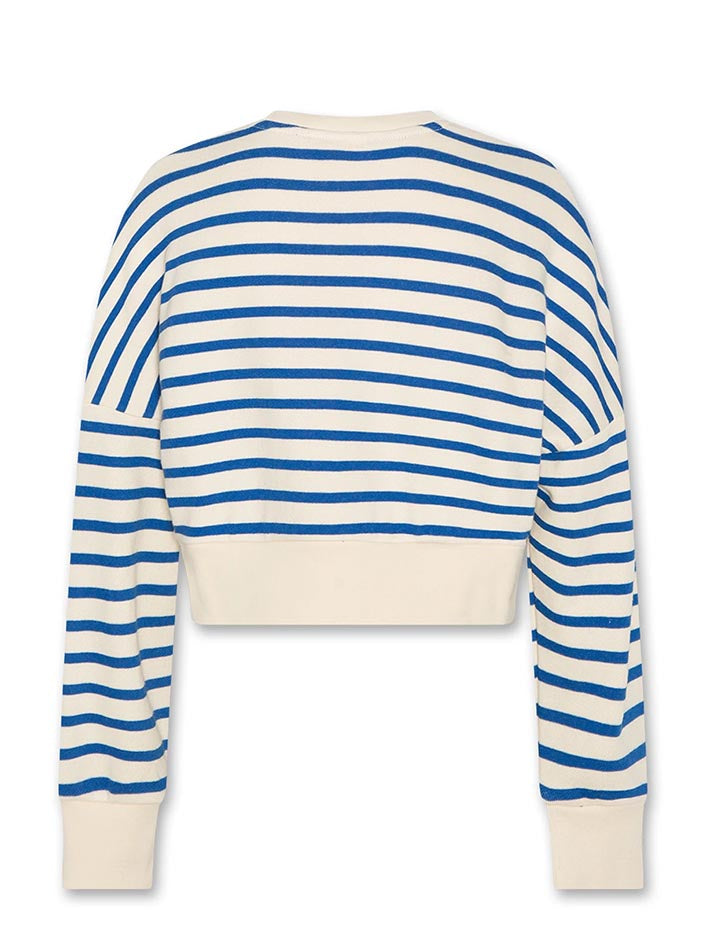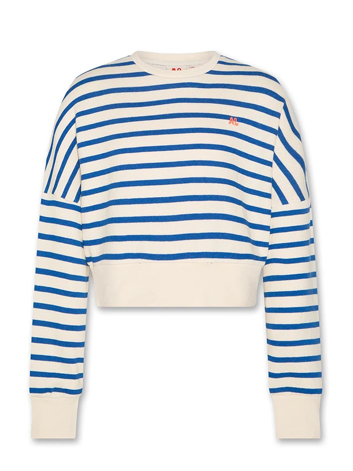 Abby Sweater Logo Stripe in Bright Blue from AO76 Striped, short and hip - best remedy for mood dip marine fleece - knits 50% recycled cotton - 50% cotton