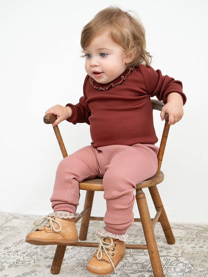 Soft and comfortable seamless wool Active Leggings in Rose by Minimalisma. The elastic waist is super-soft and stretchable. The fit is body-hugging in a 4*3 rib quality and a stylish cuff finish. Use these leggings as a thermal base-layer or as warm and cosy pyjamas pants together with the Alaska or Alpine blouse. Wool is naturally antibacterial, making it an excellent choice as a first layer. The natural properties of wool help regulate body temperature, wick away moisture, and inhibit the growth of bacteria, ensuring optimal comfort and hygiene. Quality: 100% Merino Wool
