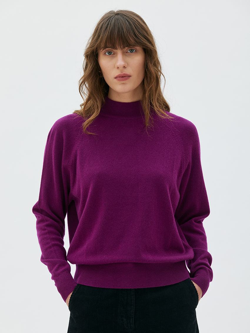 The Maska Adila is the perfect cashmere sweater with a generous body, raglan sleeves and mock neck.