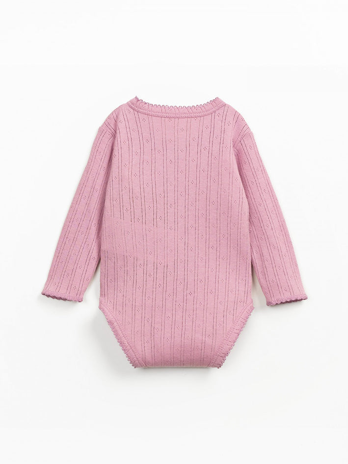 This Play Up Bodysuit is made of jersey fabric with a blend of organic cotton and recycled cotton, in Urze Rose color. It is an inner model with long sleeves and a V-neckline, featuring a wrap-over opening with a snap button on the inside and outside, and a crotch opening with nickel-free metal snaps. 50.0% Organic Cotton,50.0% Recycled Cotton