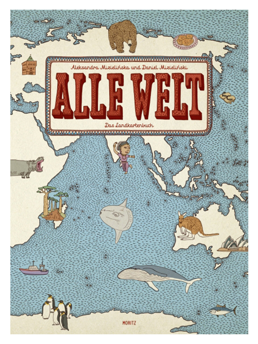 Mehr als drei Jahre haben die beiden polnischen Buchgestalter Aleksandra & Daniel Mizielinscy an diesem Werk gearbeitet! Über 4.000 Vignetten haben sie gezeichnet und eigens für dieses Buch zwei besondere Schriften entwickelt und sich intensiv mit Ländern und Kontinenten beschäftigt: Was ist das Nationalgericht von Chile? Welche Pflanzen wachsen in Marokko? Was sind die Sehenswürdigkeiten von Finnland? Welchen Sport treiben Japaner? Welcher Tanz stammt aus Österreich, welches Produkt aus der Schweiz? Auf der Deutschlandkarte finden sich das Bauhaus, der VW Käfer, Johannes Gutenberg, die Bremer Stadtmusikanten, ein Spreewaldkahn, Pumpernickel, die Porta Nigra und noch vieles mehr. Und so geht es weiter – mit Frankreich, Mexiko, den Fidschi-Inseln …
