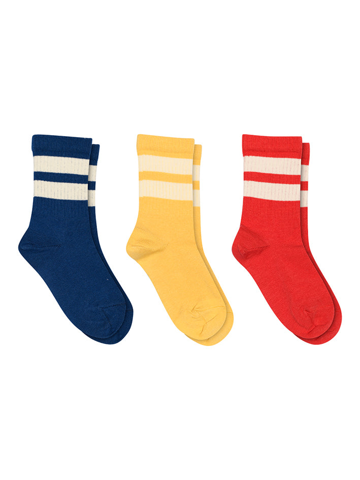 Monochrome Anker Socks in Misted Yellow with sporty stripes in contrast from mpKids. The socks are knitted in soft cotton and come as a 3-Pack. To ensure that the socks have the best possible fit, they have an anatomically correct heel with a 90° angle, as well as elastic on the foot and a wide elastic on the shaft. The socks have a reinforced heel and toe. * Soft cotton * Sporty look * 3-pack * Reinforced heel and toe * Anatomically correct heel for optimal fit * Designed in Denmark - Produced in Latvia * OEKO-TEX® STANDARD 100 CERTIFIED * Wash inside out before use