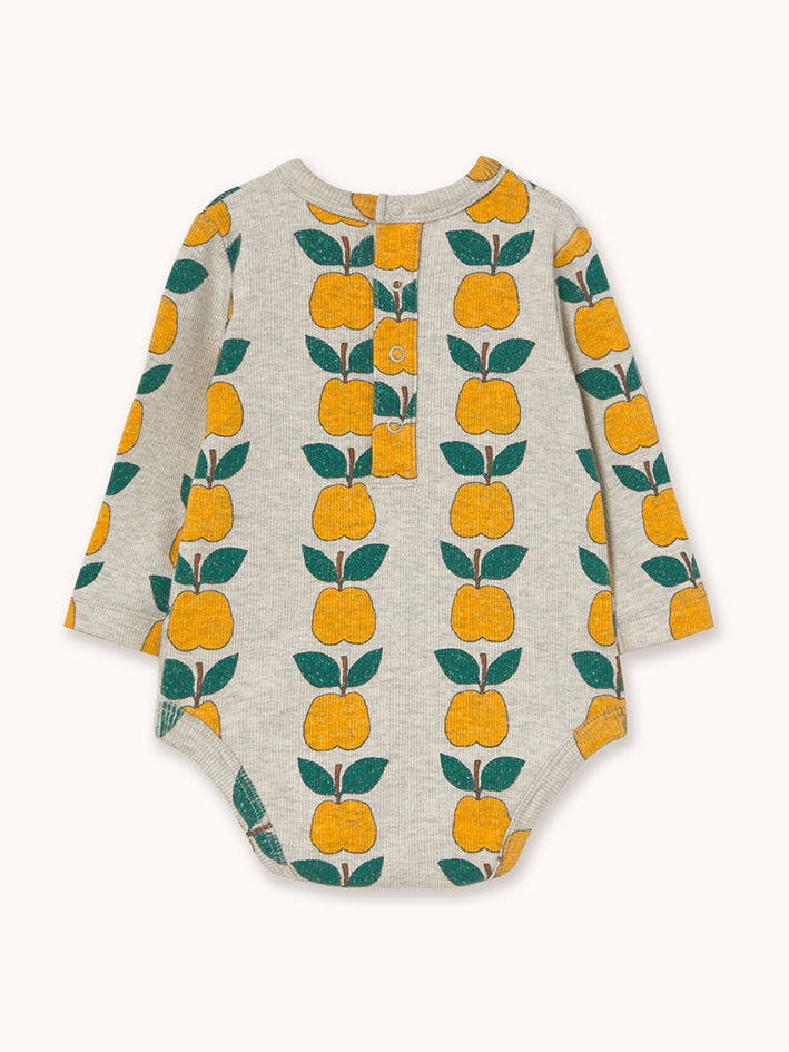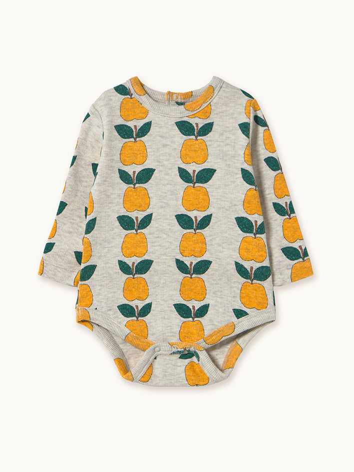 This Tinycottons colorful Apples printed Rib Body in Cream is crafted from a soft cotton blend, offering a breathable feel. It features a comfortable, relaxed silhouette with long sleeves and a snap opening at the bottom. Carefully designed in Barcelona, crafted in China in BSCI certified factories, following responsible and sustainable practices every step of the way. Composition: 95% organic cotton, 5% elastane