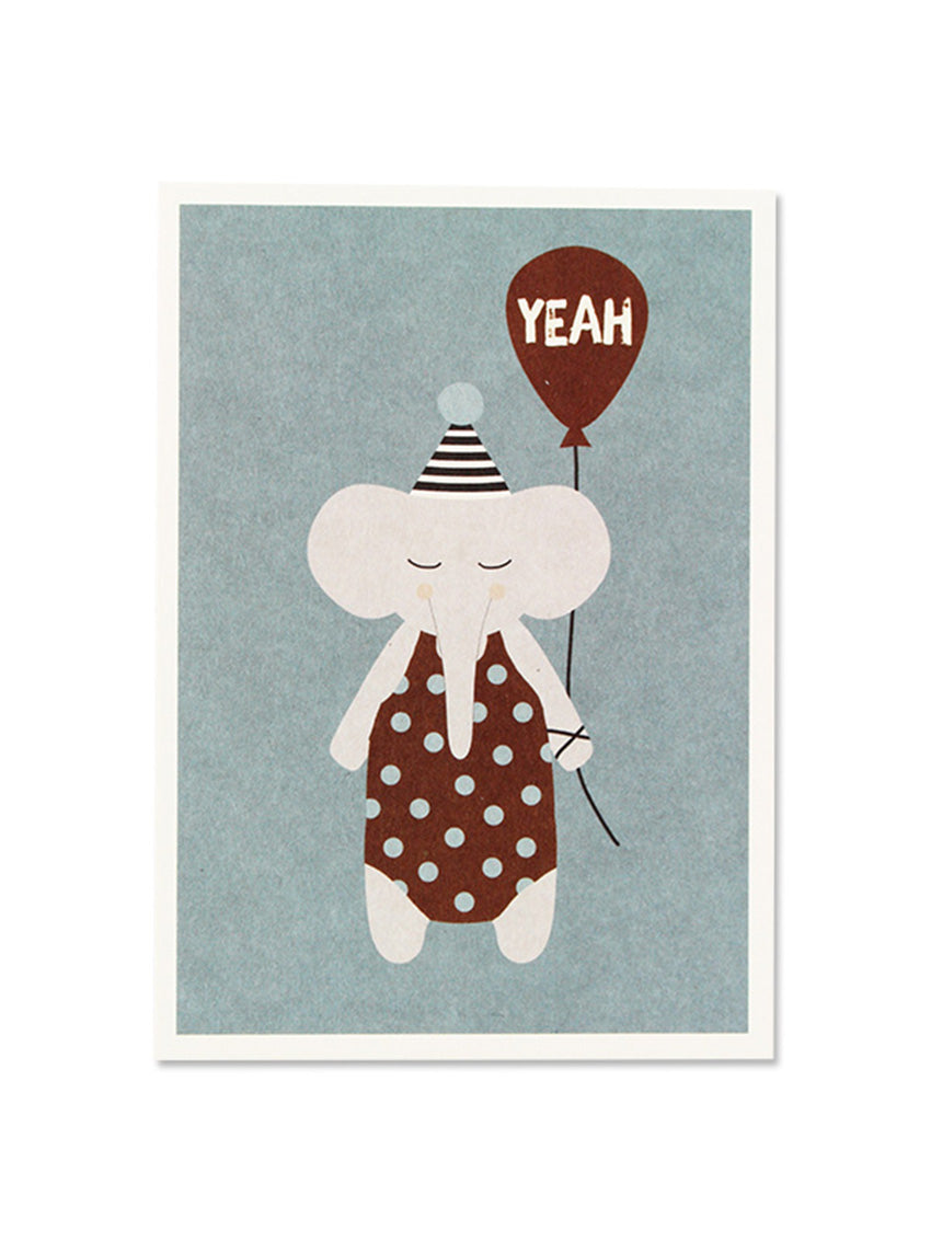 Postkarte Elefant mit Hütchen „Yeah“