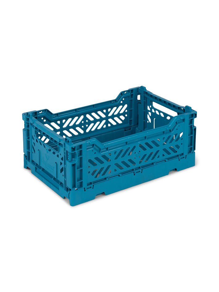 Foldable Mini-Box from Ay-Kasa - if you don't use it, you can easily fold this colorful storage box to save space - the crates are stackable, super handy at home and even more fun when you combine colors. These practical storage crates are available in a range of stylish colors and in different sizes. Material: all AY-kasa crates are made from 100% recycled PP material Dimensions : outside 27 x 17 x 10.5 cm / inside: 24.6 x 15.7 x 10.4 cm 4 liter capacity Load capacity: maximum 2.5 kg Weight 180g. Suggested use: all panels are individually removable and washable Origin: made in turkey