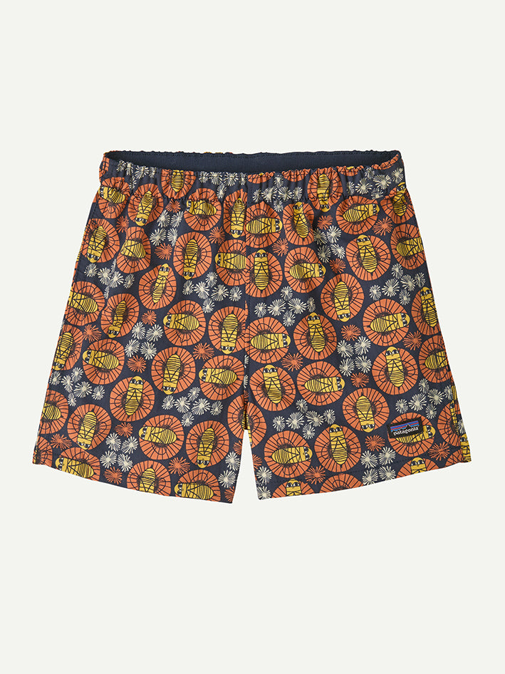 The quick-drying Baby Baggies™ Shorts in New Navy by Patagonia are roomy enough for a diaper and have a soft, elastic waistband for easy on and off. Their lightweight 100% NetPlus® recycled nylon faille fabric is made from fishing nets to reduce plastic pollution in the oceans; it has a durable water repellent (DWR) finish, made without the use of PFAS, to shed light showers. Leg length 5 cm (2" inseam).