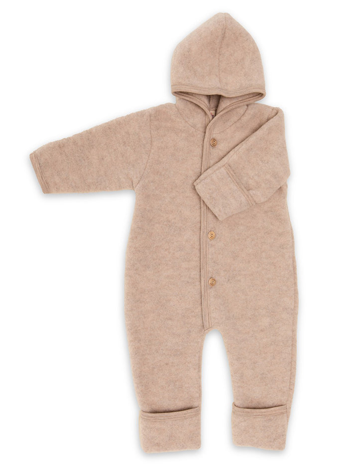 Super cozy - the Engel Natur Baby Fleece Overall in Sand Melange with hood!