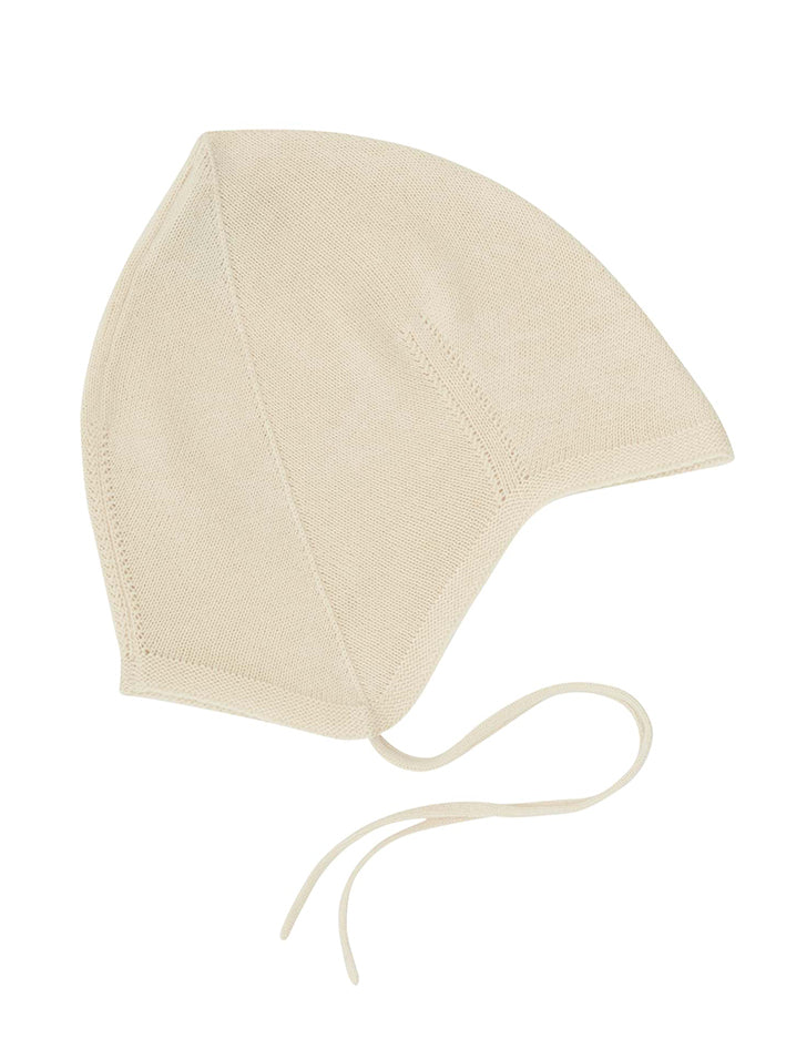 Made from soft organic cotton this fine Baby Hat by FUB is knitted in one piece with just one seam in the back. It features subtle shaping details for a perfect fit, delicate purl stitch edges and fine knitted ribbons.
