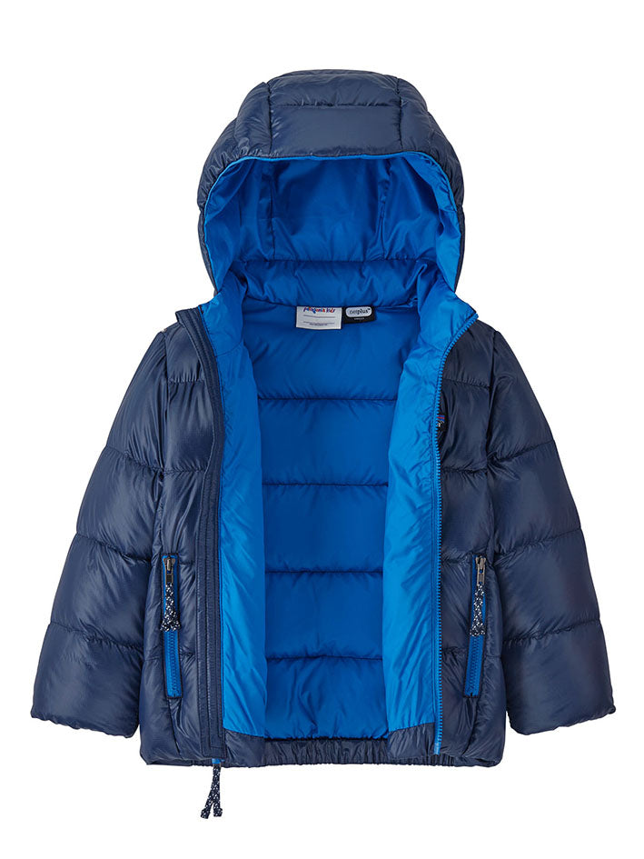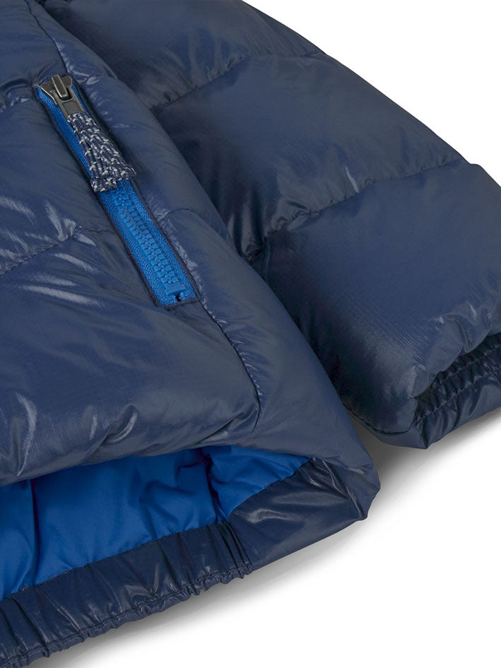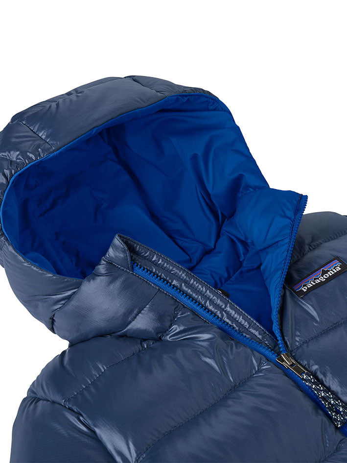 This is Patagonia`s warmest Down Jacket in New Navy for babies. It layers easily and has an insulated hoody and soft, smocked internal elastic at the cuffs to keep out drafts. The shell fabric is NetPlus® 100% postconsumer recycled nylon ripstop made from recycled fishing nets to help reduce ocean plastic pollution. Insulated with warm, compressible 700-fill-power 100% Recycled Down (duck and goose down reclaimed from down products).