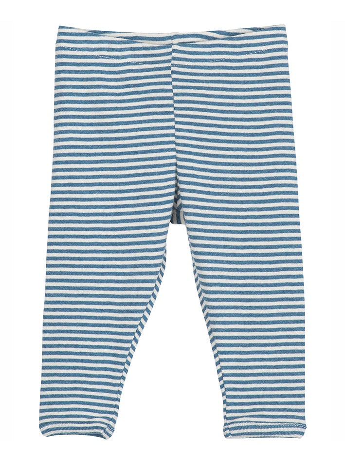Striped soft Leggings for Babies by Serendipity in a signature organic mélange cotton rib fabric. The soft fabric has Sky-blue and Off-white coloured Stripes and a simple and comfortable elastic in the waist.