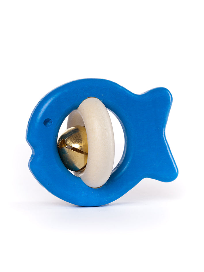 The charming Bajo Fish Rattle With Bell in Blue is made of wood and have a small bell hidden inside. They are perfect for playing for the youngest, they are handy for children's hands. Dimensions: 8 cm x 7 cm x 5 cm Material: wood painted with non-toxic paints, metal Made in Poland