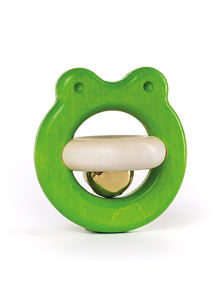 This Bajo Frog Rattle in Green has a bell. Design: Wojciech Bajor Size of the rattle: 7 cm x 5 cm x 7 cm Box: 11 cm x 6 cm x 8 cm Recommended for children over 6 months old