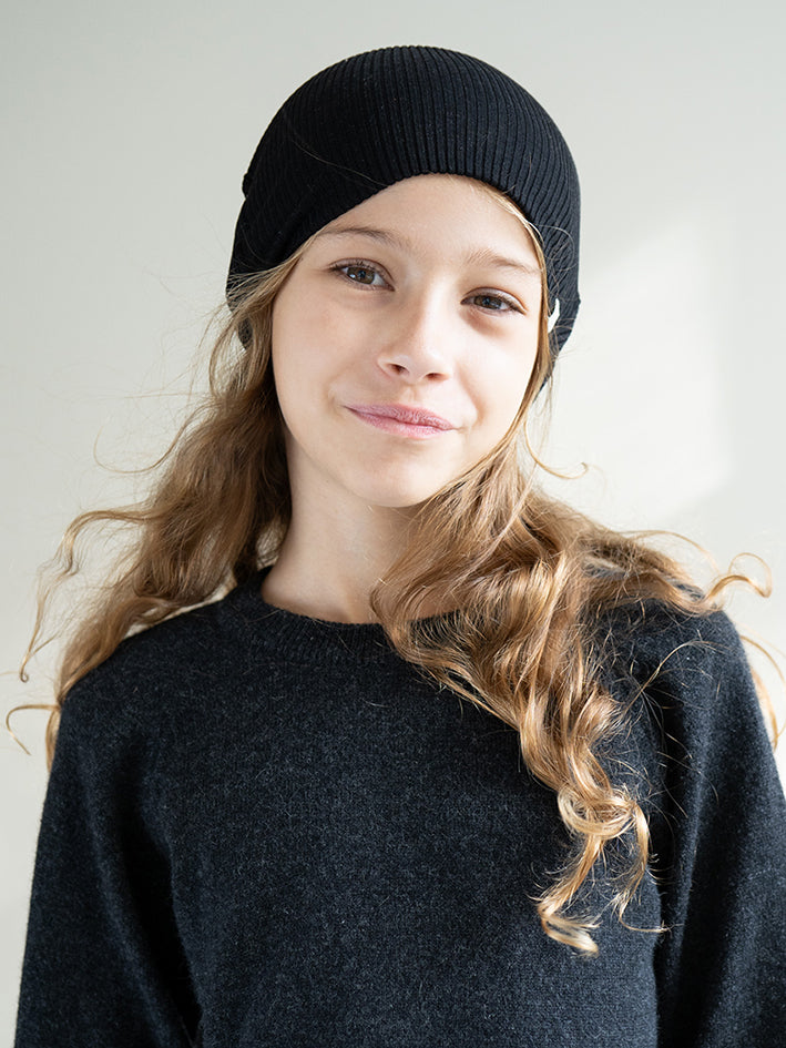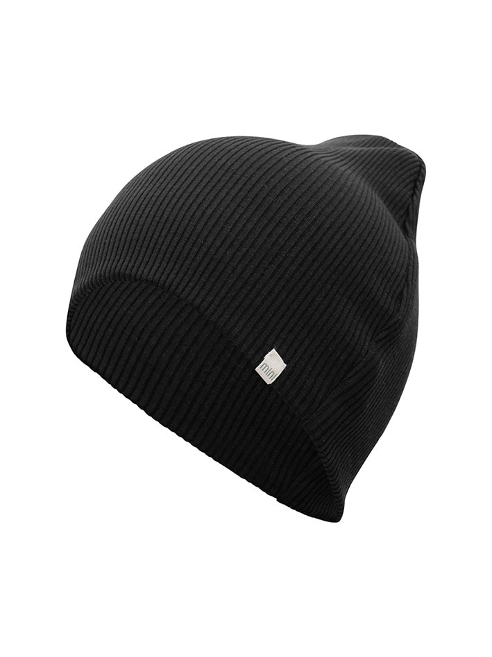 This Bambi Beanie in Black by Minimalisma is crafted from a soft silk-cotton mix for ultimate comfort. The double-layer rib construction adds an extra layer of warmth and insulation. Perfectly suited for little ones, this hat fits comfortably underneath bike and/or ski helmets, providing added protection and comfort during outdoor activities. Its seamless design ensures a smooth and irritation-free experience. For below 1-year olds, we recommend the size 1-6Y, which can be folded once to adjust the length for a perfect fit. This feature allows for easy sizing and accommodates growth over time. Quality: 70% Silk, 30% Cotton