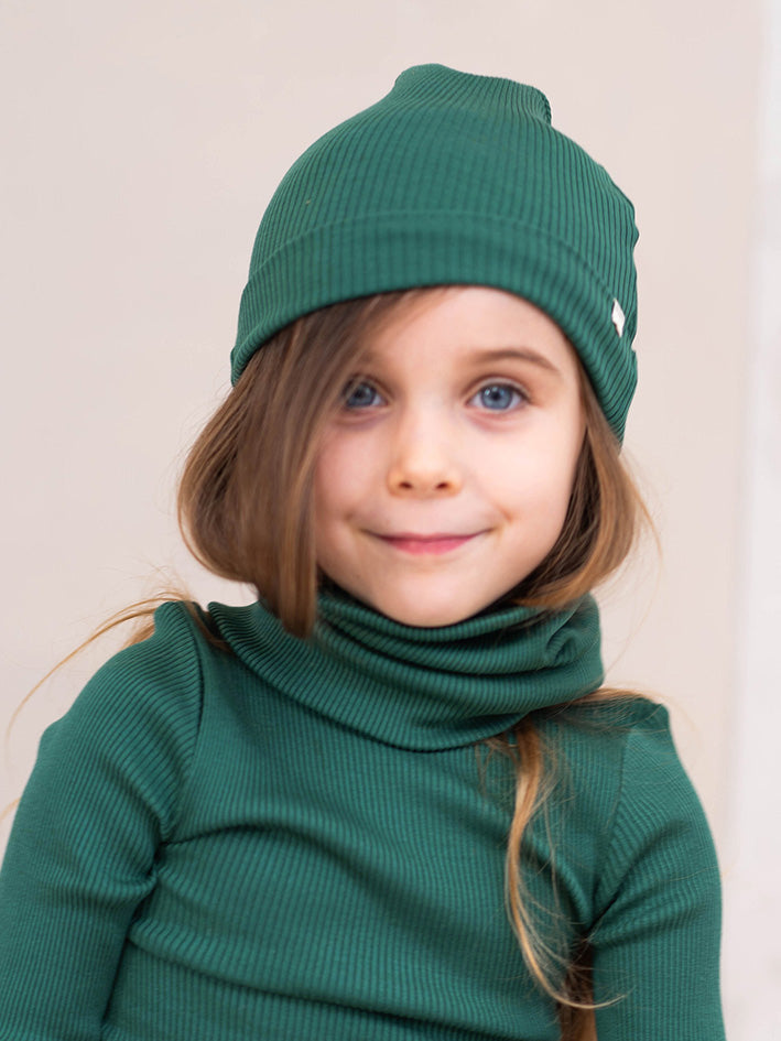 The double-layer rib construction adds an extra layer of warmth and insulation. The Minimalisma Bambi Beanie in Emerald is perfectly suited for little ones, this hat fits comfortably underneath bike and/or ski helmets, providing added protection and comfort during outdoor activities. Its seamless design ensures a smooth and irritation-free experience. For below 1-year olds, we recommend the size 1-6Y, which can be folded once to adjust the length for a perfect fit. This feature allows for easy sizing and accommodates growth over time. Quality: 70% Silk, 30% Cotton