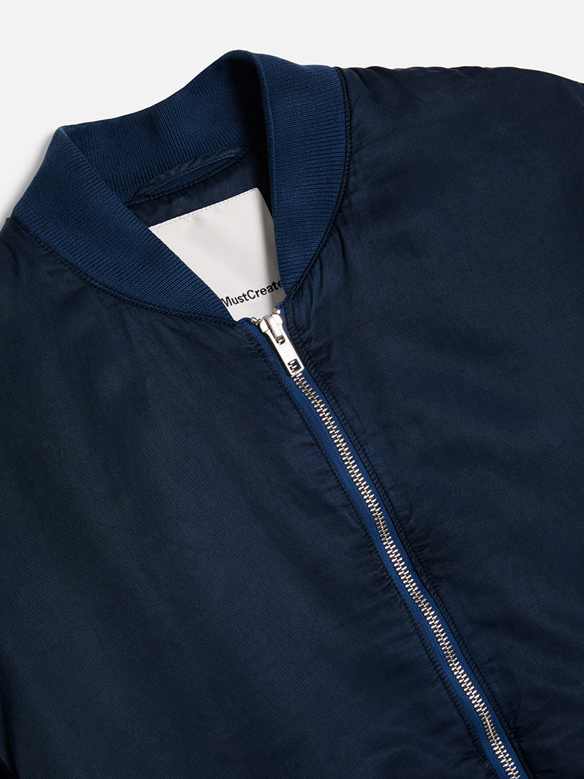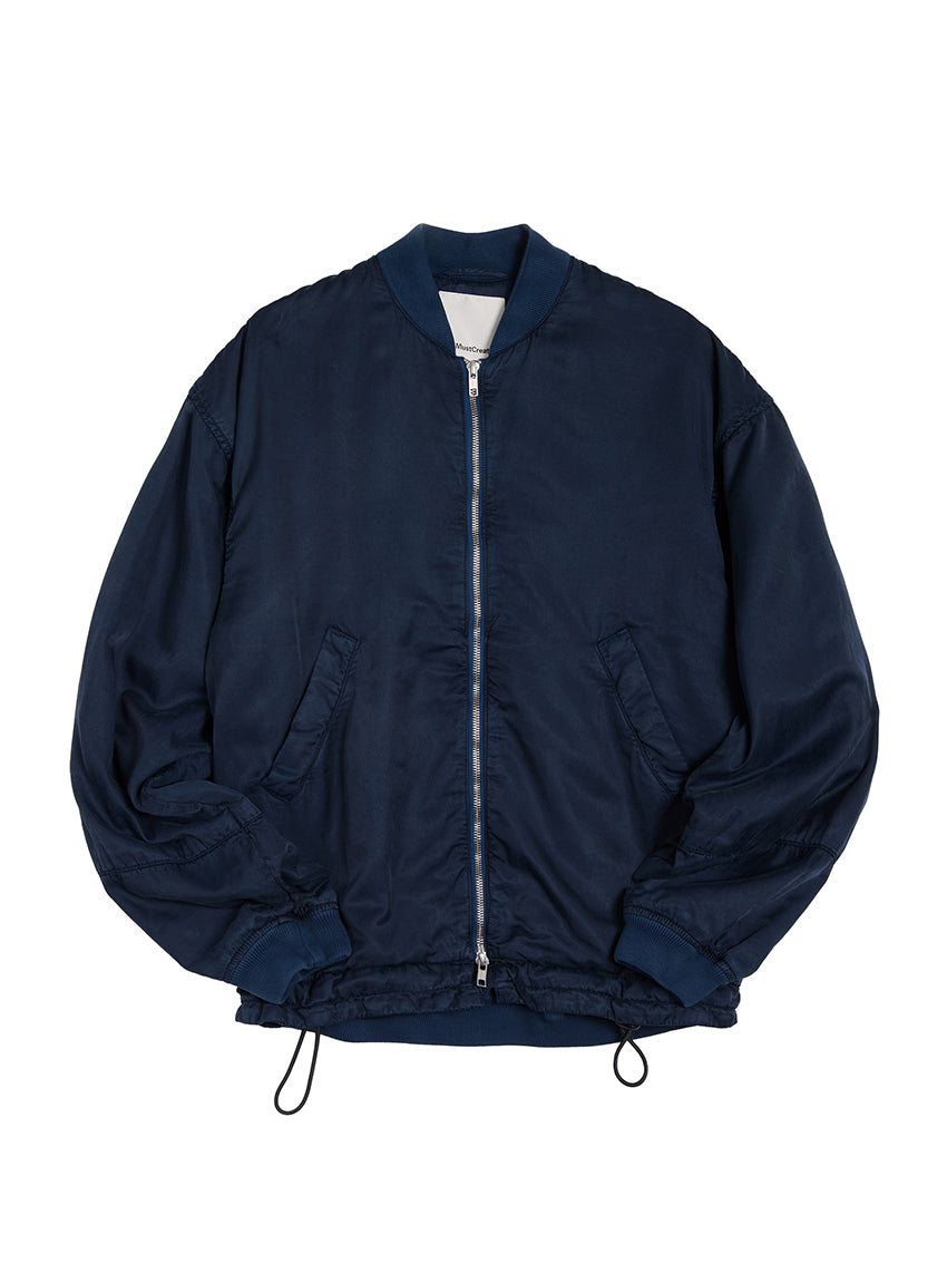 Lightweight bomber jacket made from garment dyed bonded cotton cupro.