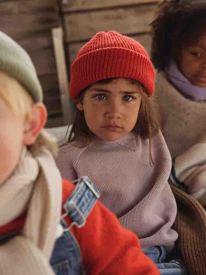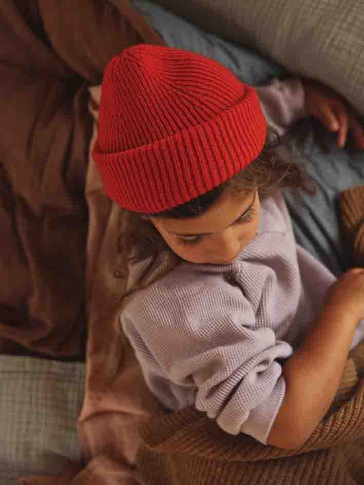 The soft rib Fonzie Kids Beanie from merinowool by Hvid.