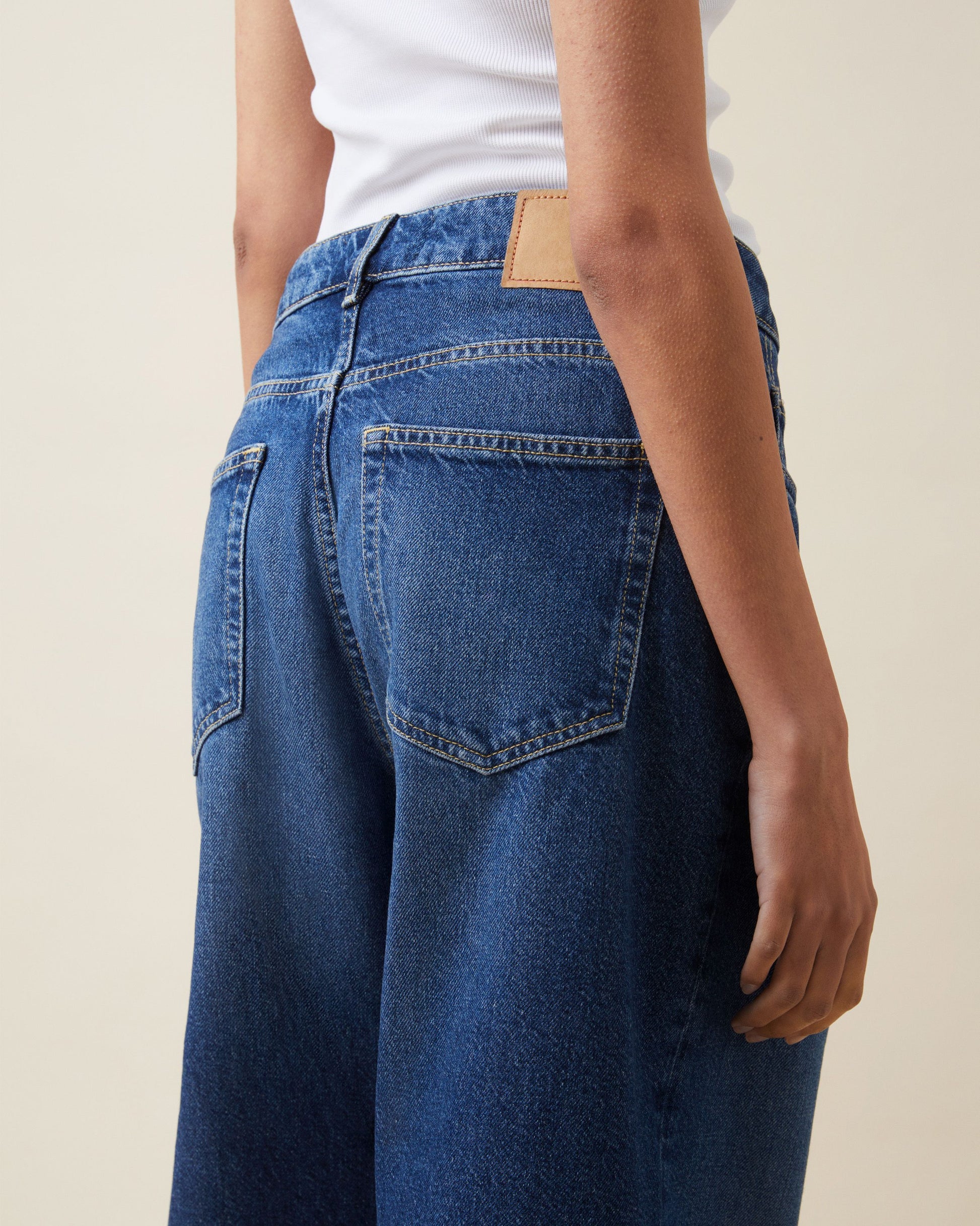 With its mid waist, five pockets, and generously wide straight leg, 'Belem' offers a timeless silhouette.