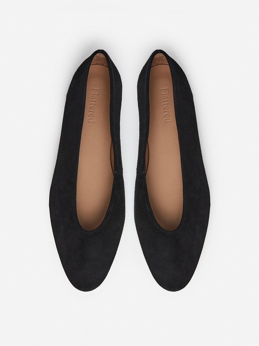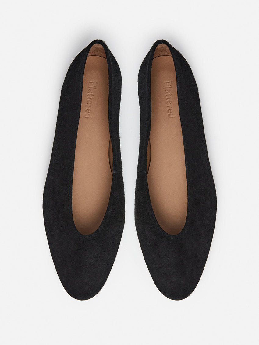 The Flattered Belinda Suede Ballerina in Black is crafted in: Elche, Spain